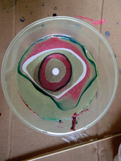 I blobbed Green, Red & Gold onto the plate & it seemed to work out okay.